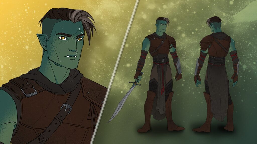 Player: Travis Willingham • Classe: Pact Blade • Raça: Meio-Orc • Pronomes: Ele/Dele • Nível: 2