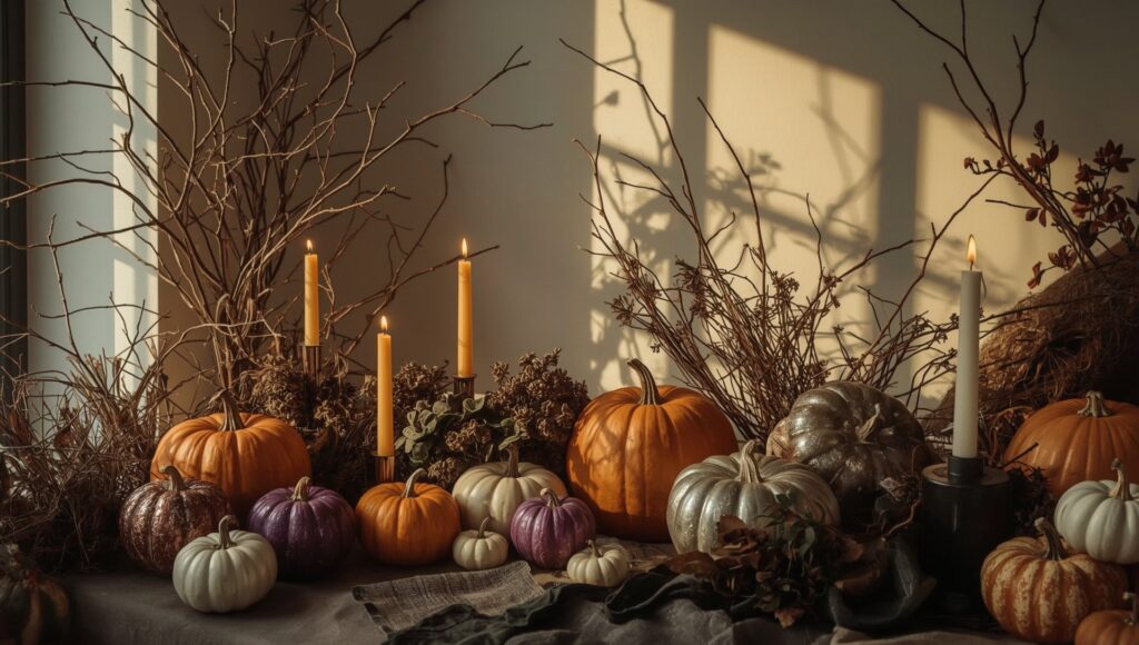 Uma das partes mais mágicas do Halloween é, sem dúvida, a decoração. Em 2025, a tendência é misturar o clássico com o contemporâneo, criando ambientes que encantam tanto adultos quanto crianças. Abóboras continuam sendo protagonistas, mas ganham cores alternativas como roxos, prateados e verdes fluorescentes, combinando com luzes de LED e velas eletrônicas para criar uma atmosfera misteriosa e segura.
